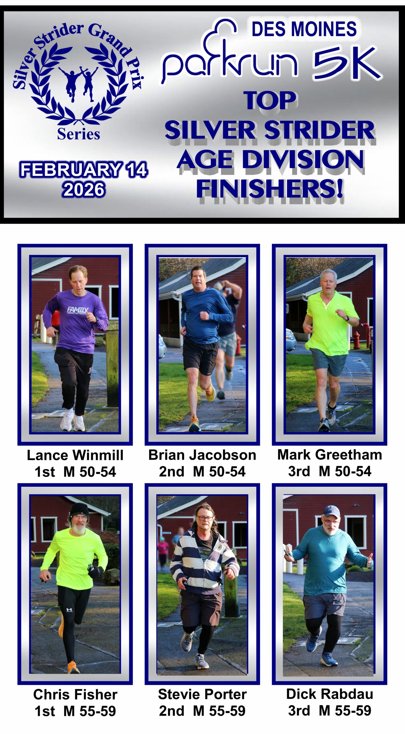 Jerry’s note: Several Silver Striders weren’t wearing their shirts or hats. “We didn’t know the Ambassador program was continuing in 2026”. I don’t know how to get runners to check the Bulletins. You should check bulletins once a week. I suggest Thursday. My final concession is this – “Qualifying for an Ambassadorship will commence on March 7th at the Resolution Run”.