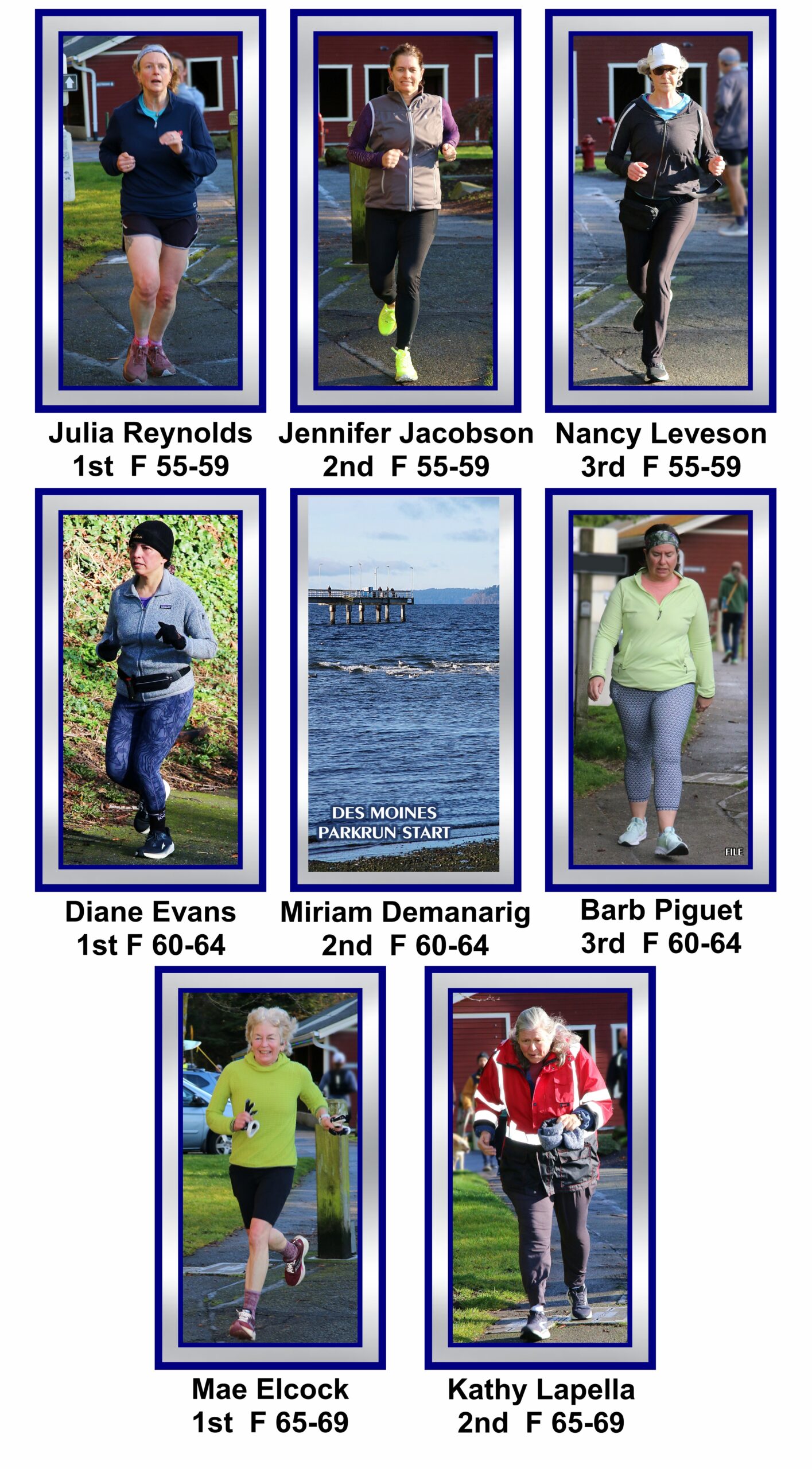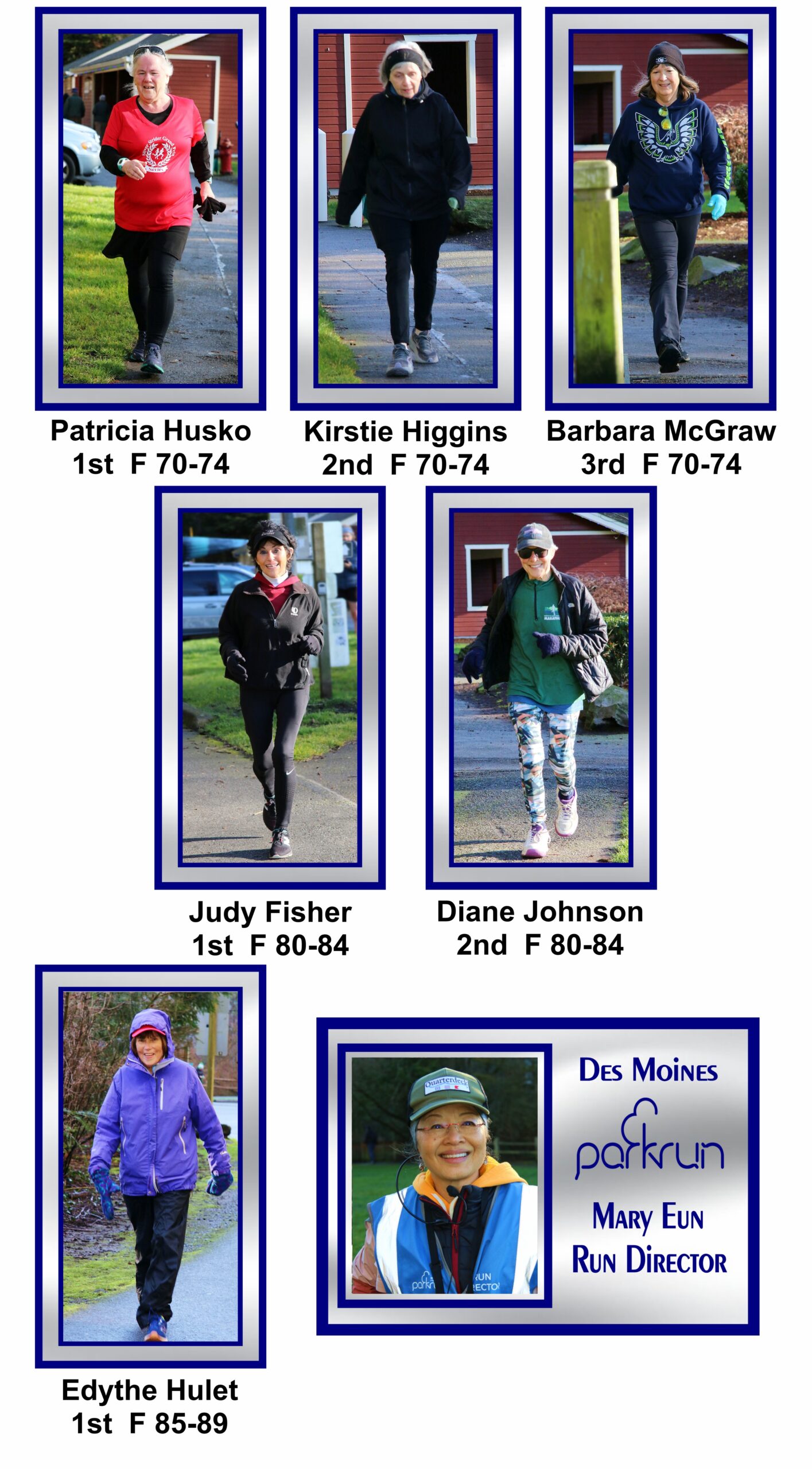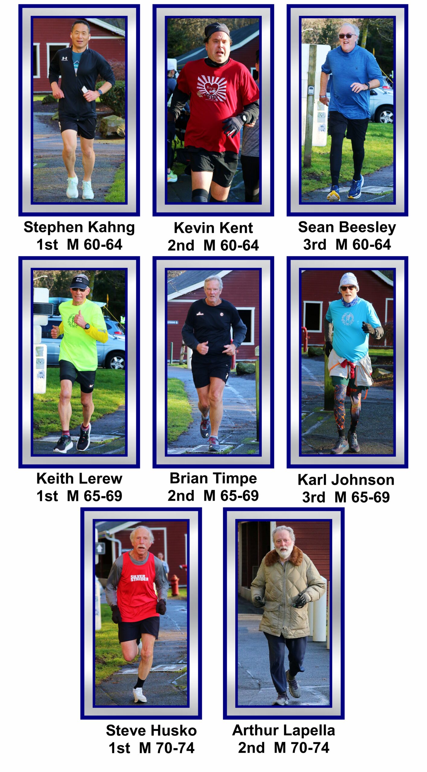 The first Silver Strider to finish was Bruce’s son, Chris. He was 2nd overall. His time was a fast 20:50. The first female Silver Strider was Julia Reynolds in 25:08. Julia was the 4th female overall.