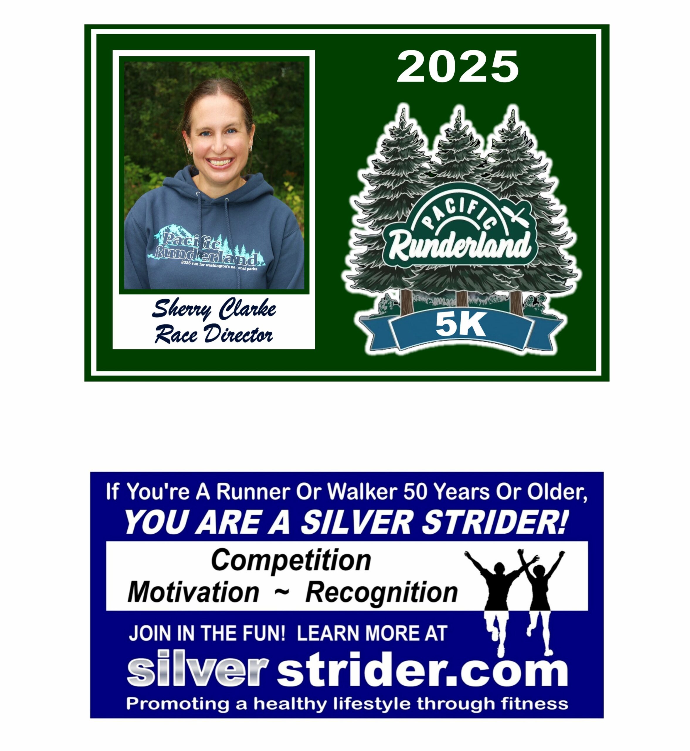 There was a great turnout of Silver Striders, 66 of the 217 runners were 50 and over. Bruce had quite the time trying to corral us all together for the pre-race photo. The first female Silver Strider was Amanda Hoskins with a time of 23:00. Chris Fisher was the first male Silver Strider with a time of 20:50.