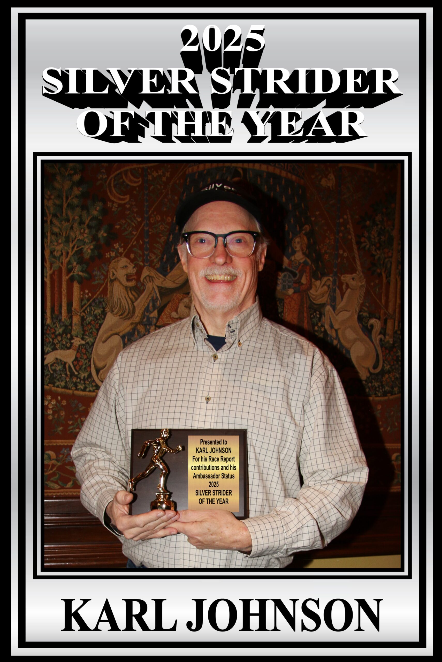 And so, it was announced that the “Silver Strider Of The Year” for 2025 was Karl Johnson and he would receive the first “plaphy”.