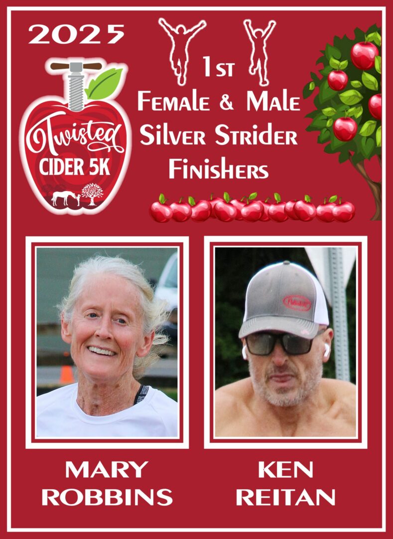 We had two more Silver Striders finishing their 8th series race. They were Bob Davies and Keith Lerew. We still have 15 races left on the schedule, so there is still time for many more series finishers to get in on the trophies and prizes. We have several Silver Striders with 7 finishes, so, we expect our goal of 40 finishers will be reached by the end of the year.