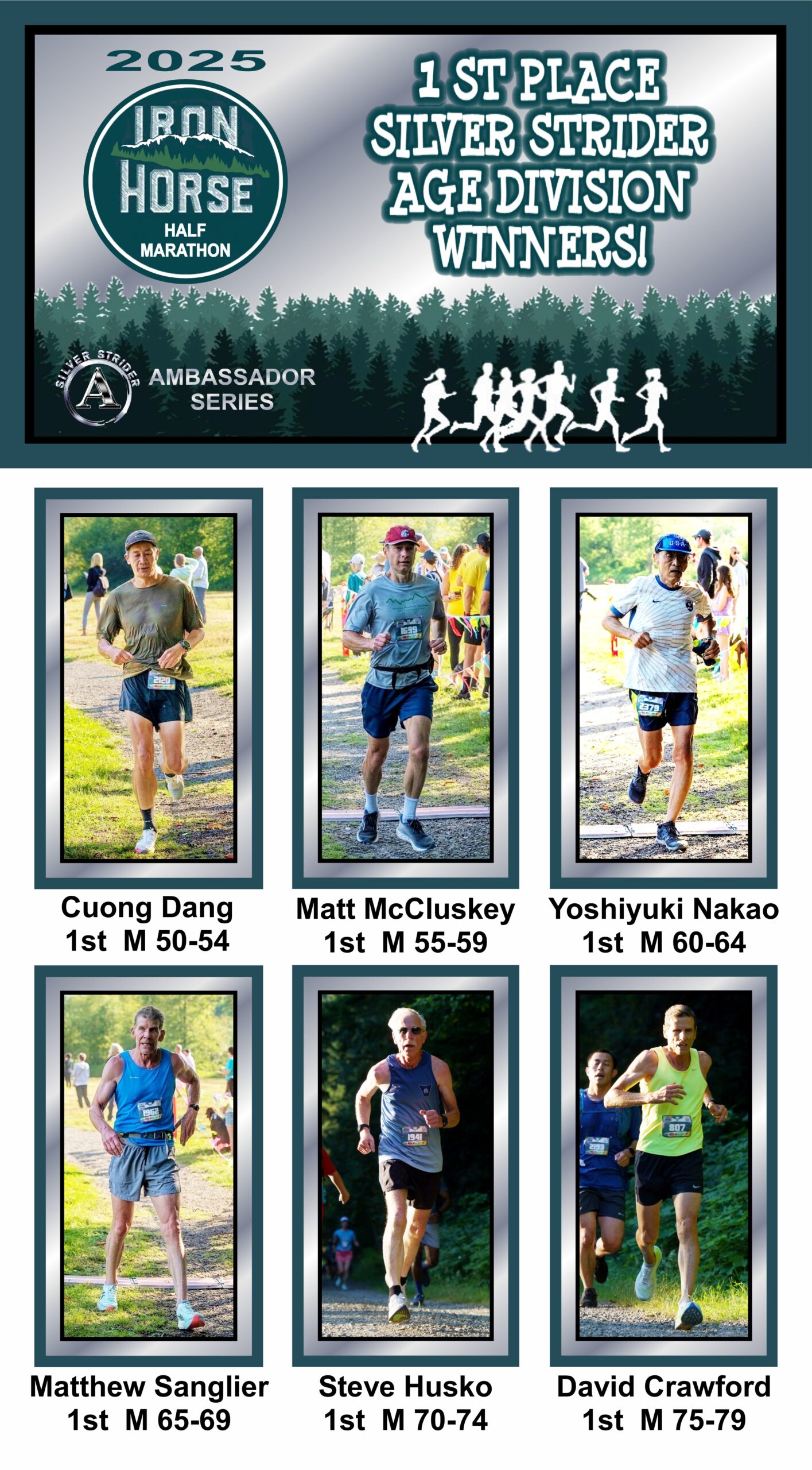This was a well-attended race with 1386 participants, of which 253 were Silver Striders. The first female Silver Strider was Caryn Landau-Walter with a time of 1hr33m28s. The first male Silver Strider was Coung Dang with a time of 1:31:46.