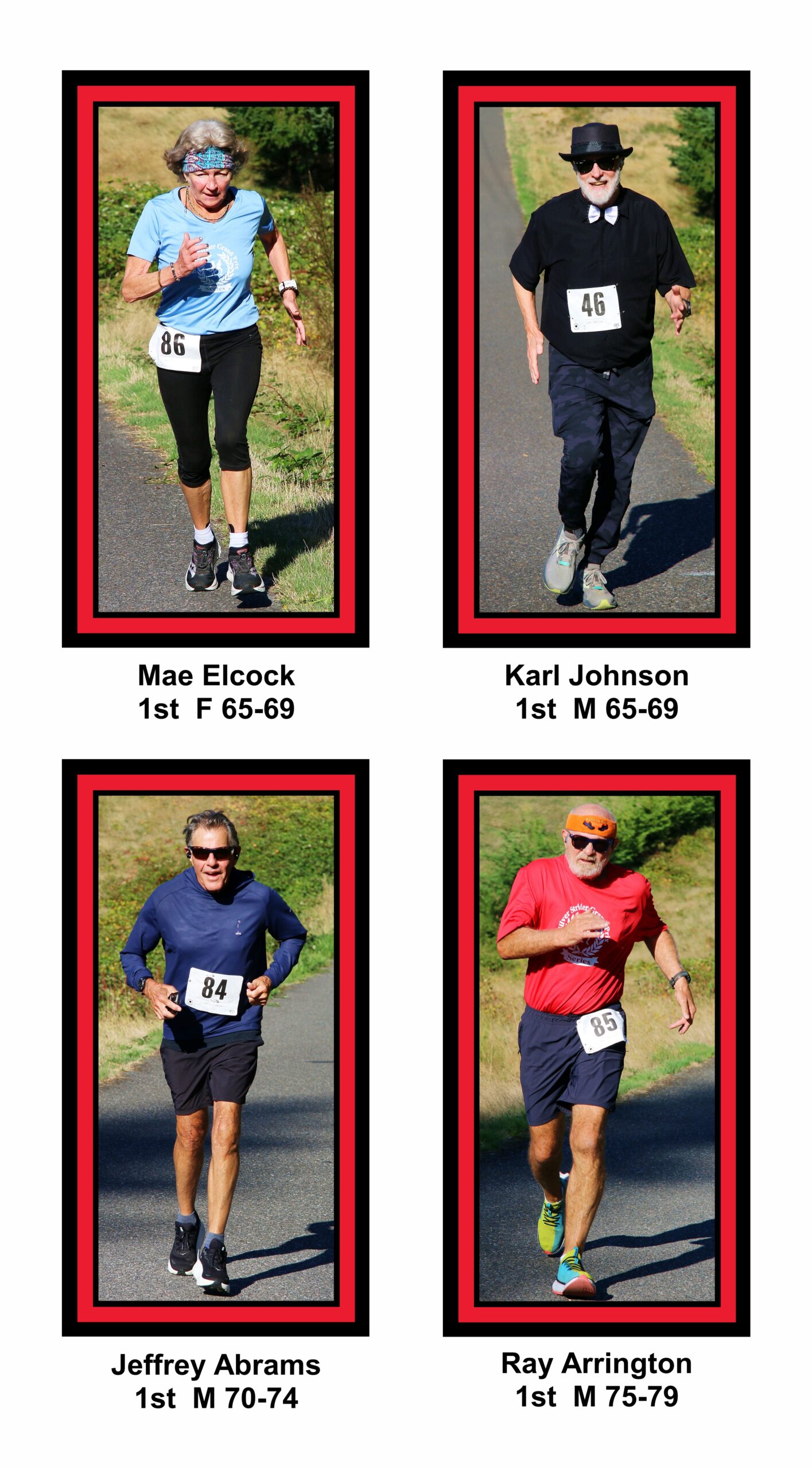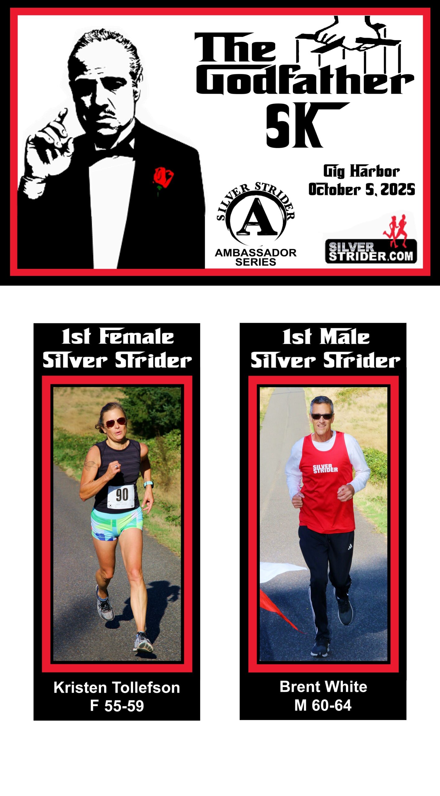 Karl Johnson retained the lead for men in competition for Mr. Grand Prix 2025, by Running the Kraken 5k on Saturday and The Godfather 5k on Sunday. Karl has completed 24 of the series races. On the women’s side Judy Fisher leads the Ms. Grand Prix competition. She also has completed 24 Races.
